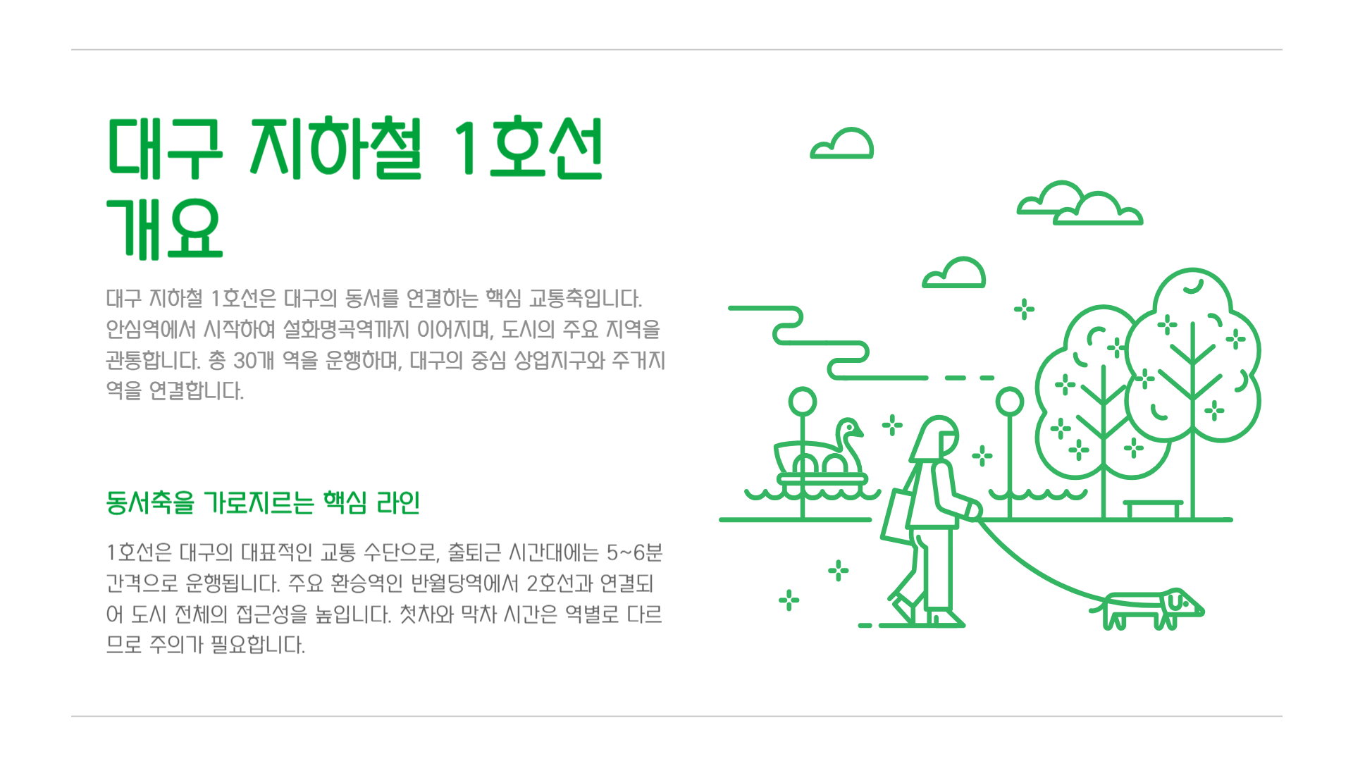 대구라는 도시는 지하철만 잘 활용해도 삶의 질이 훨씬 높아집니다.